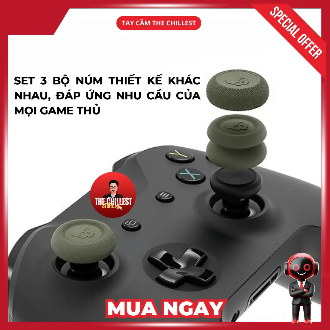 Bộ nút bọc Skull & Co chính hãng là phụ kiện cao cấp dành cho game thủ, tương thích nhiều dòng tay cầm như Flydigi Apex 5, Apex 4, Vader 4 Pro, Apex 3, Vader 3 Pro, cũng như Xbox, PS4, PS5.